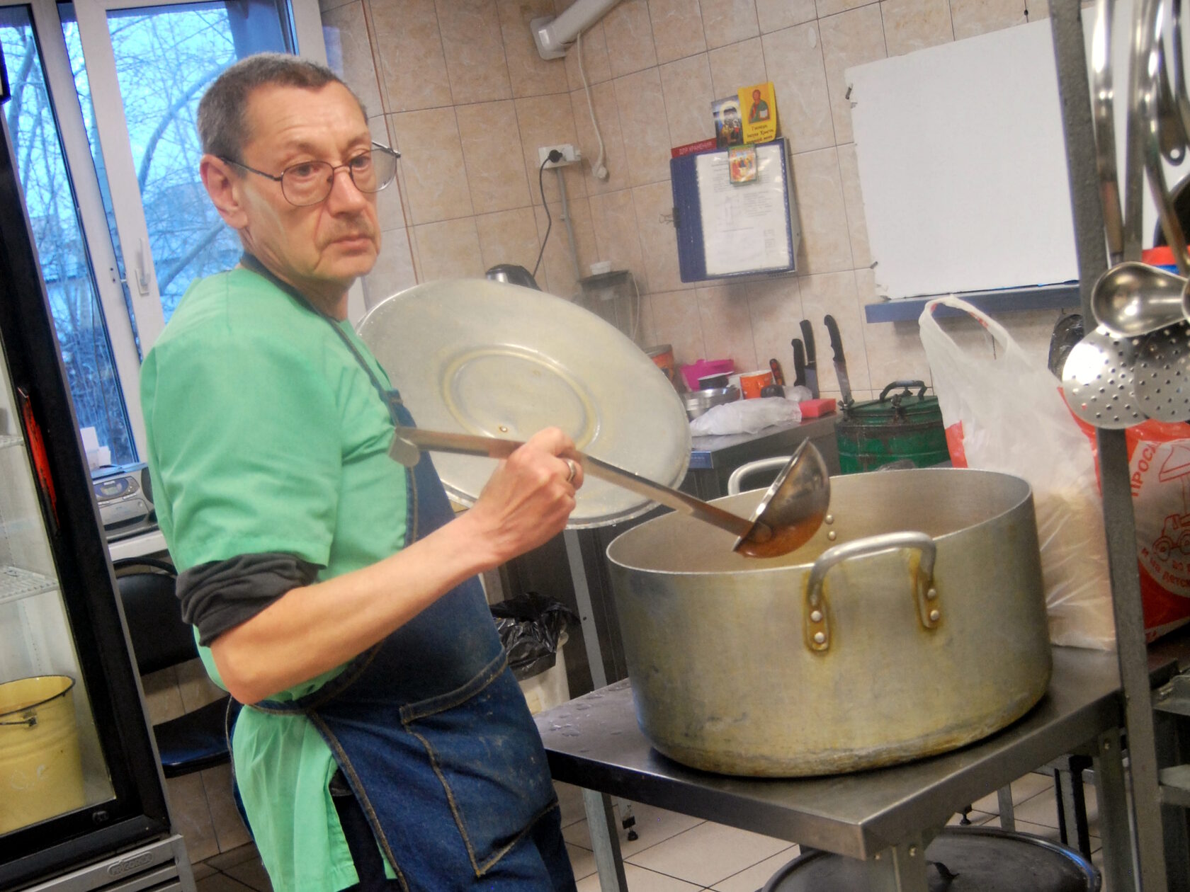 Всего лишь три дня по известной причине не работала кухня в «Милосердии». Но все вернулось в прежний режим. Повар Виталий регулярно готовит вкусные блюда, ароматный запах борща снова витает в помещении центра «Милосердия».