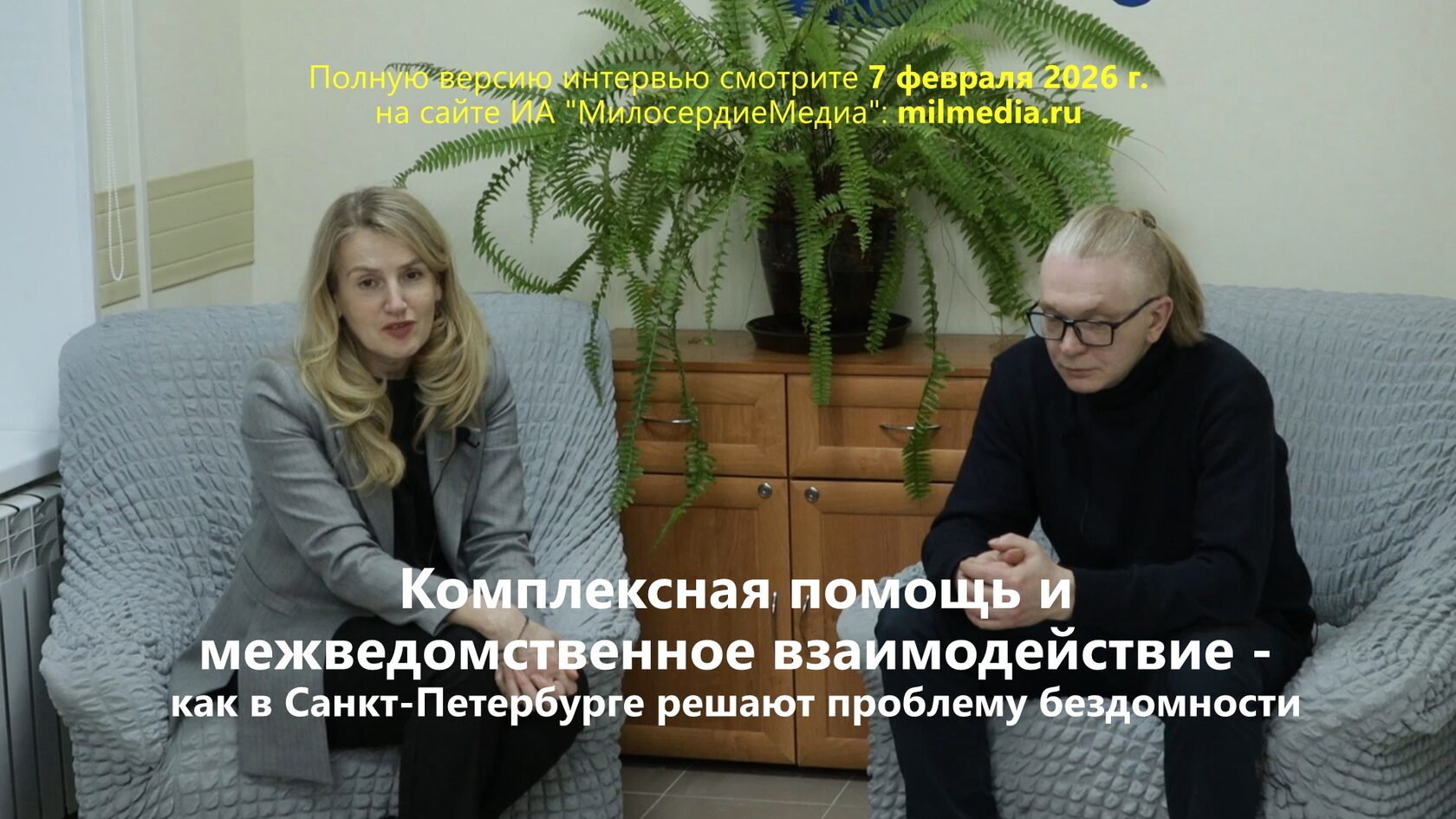 Специально для ИА «МилосердиеМедиа» представители Санкт-Петербургского государственного казённого учреждения «Центр учёта и социального обслуживания граждан Российской Федерации без определённого места жительства» записали видео. В нём директор учреждения Антонина Ковалёва и ведущий специалист Игорь Антонов рассказывают о том, как в Центре осуществляется комплексная работа по оказанию помощи людям, оказавшимся в трудной жизненной ситуации на улицах северной столицы, о межведомственном взаимодействии, о динамике показателей бездомности в Санкт-Петербурге и многом другом. Предлагаем вашему вниманию короткий анонс, а полную версию видео смотрите на нашем сайте 7 февраля 2026 года.