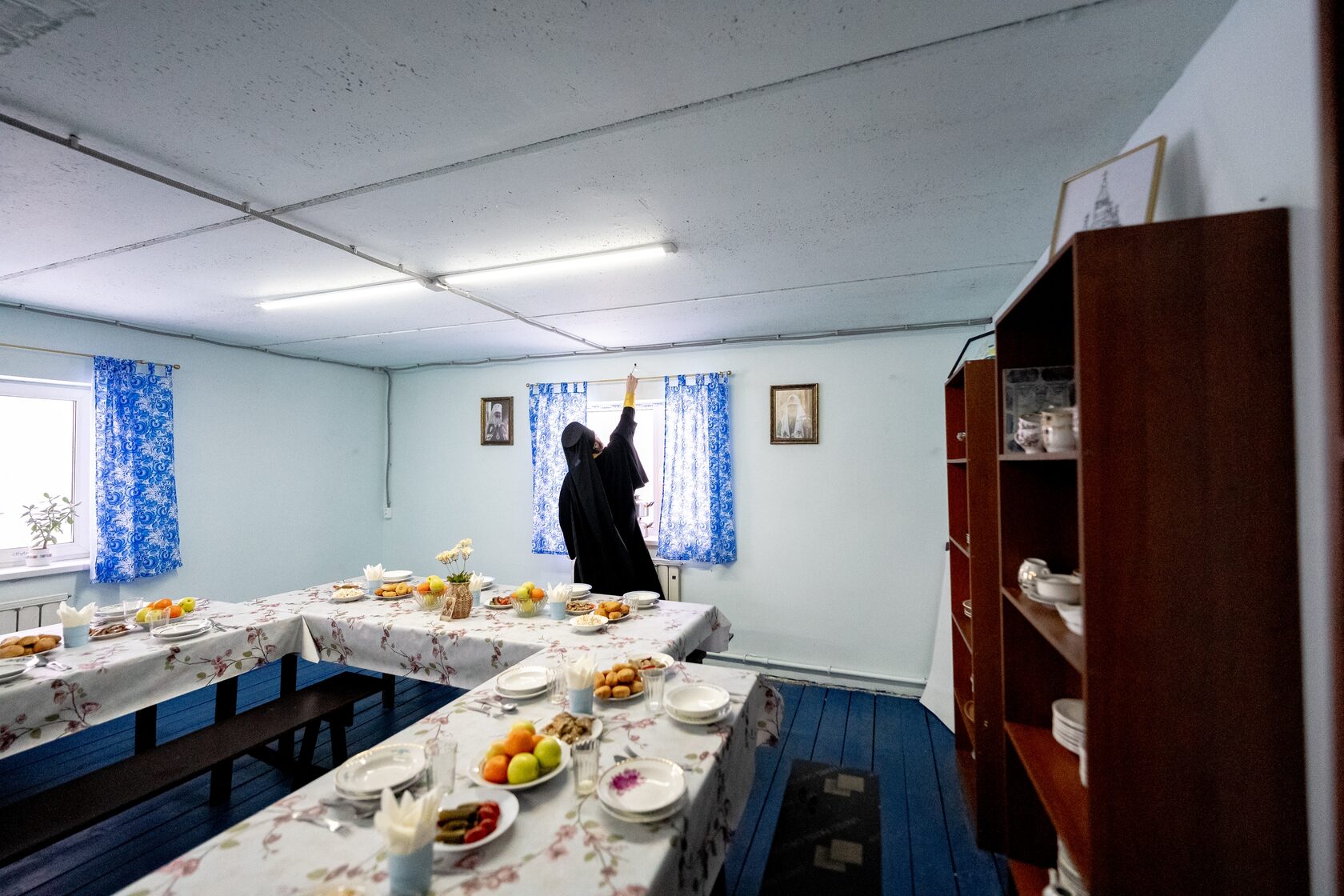 В новой постройке располагаются: кухня, трапезная и места для проживания ещё 18-ти человек, попавших в трудную жизненную ситуацию. Иеромонах Силуан делится: